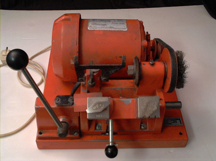 Schlüsselfräse zum kopieren von Schlüsseln. Egal ob Haustür, Wohnungstür oder Autotür die Aufnahmen für verschiedene Schlüssel sind an der Maschine vorhanden und Rohlinge gibt es in jedem Baumarkt. Preis auf Anfrage.